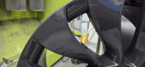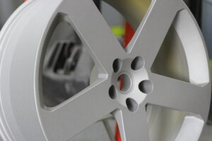 Powder coating is a finishing process where a dry powder is electrostatically applied to the wheel and then cured in a high-temperature oven. This creates a hard, uniform, and highly durable finish.